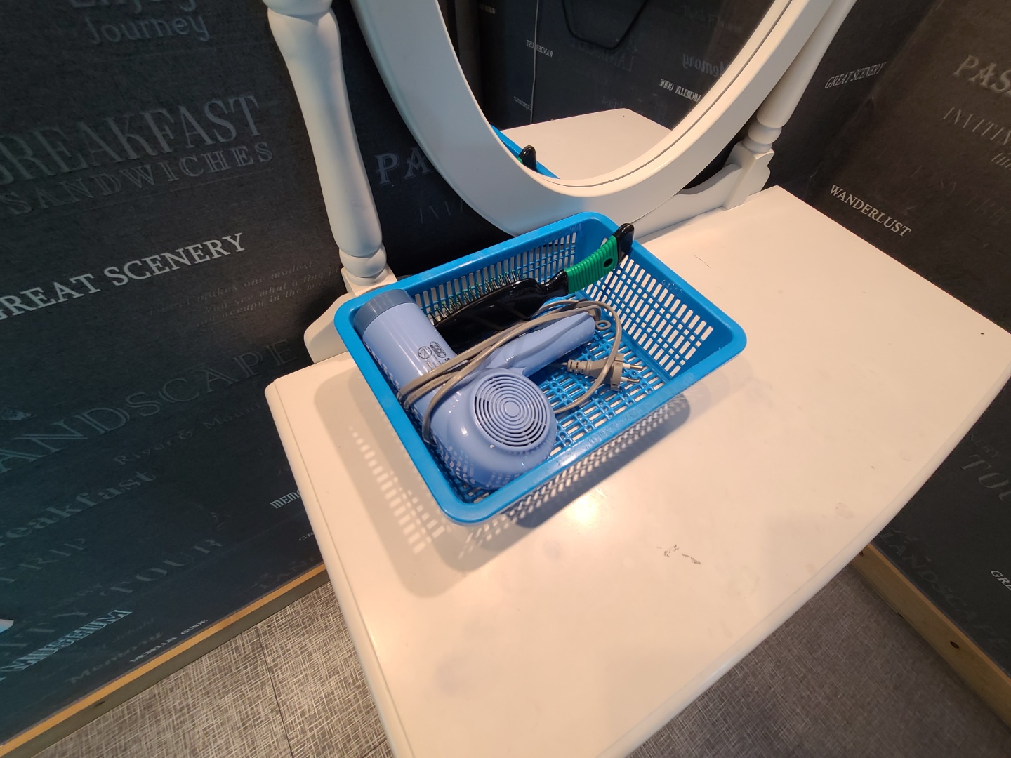 드라이기랑 빗이 비치되어있으니